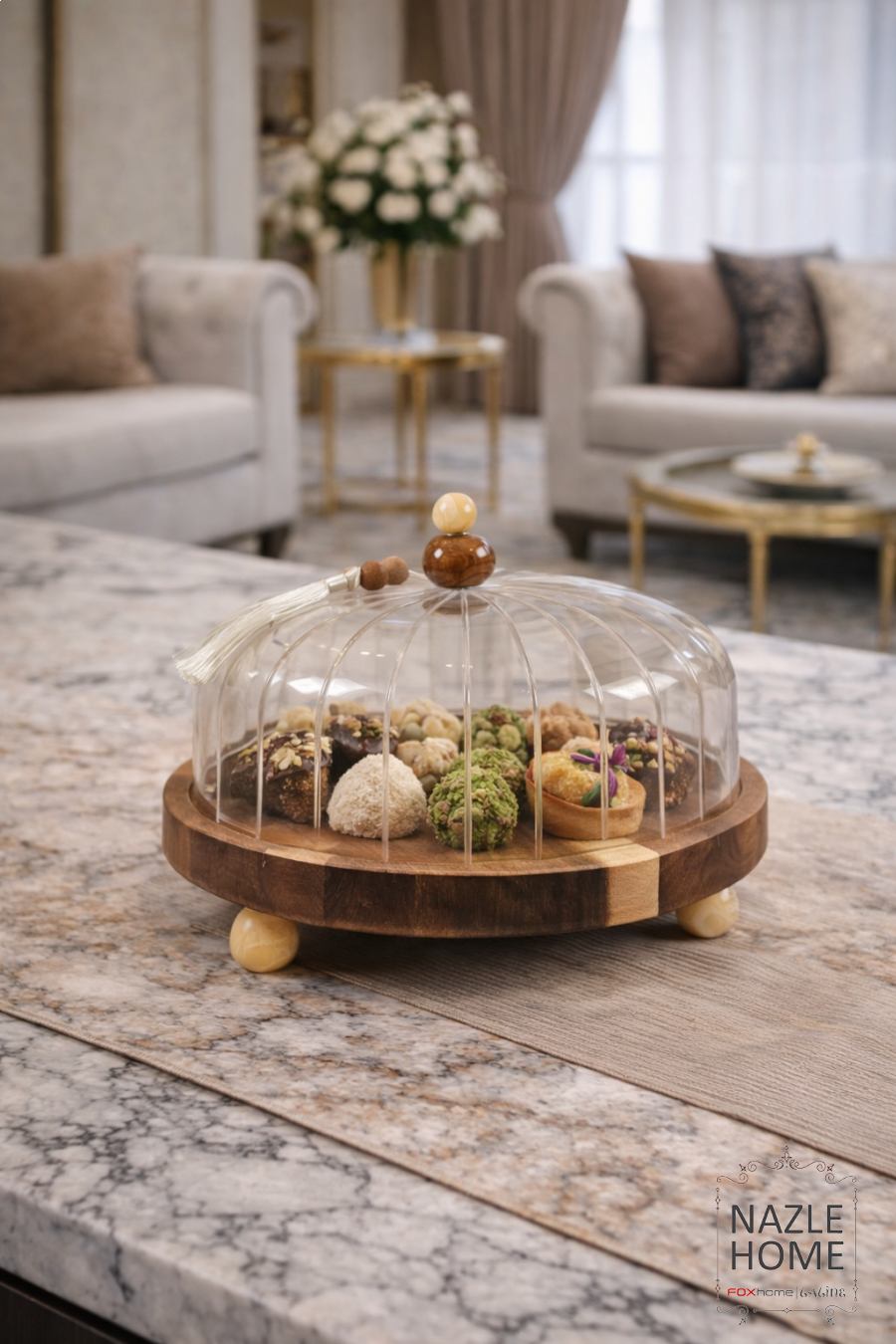 مضيفة كيك الاحجار الكريمة خشب غطا زجاج