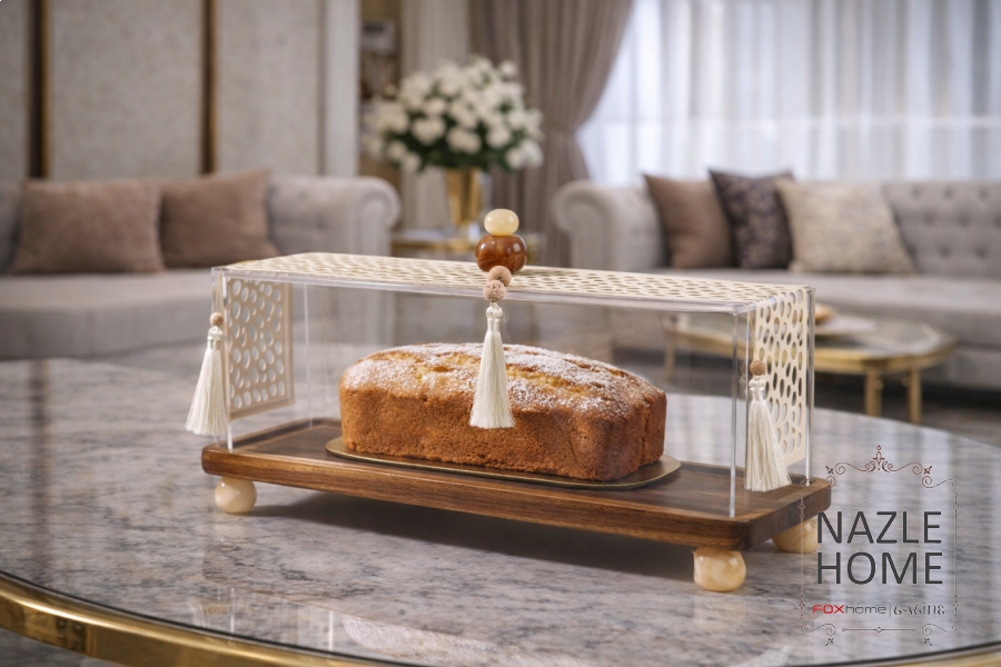 مضيفة كيك انجلش خشب غطا اكريلك