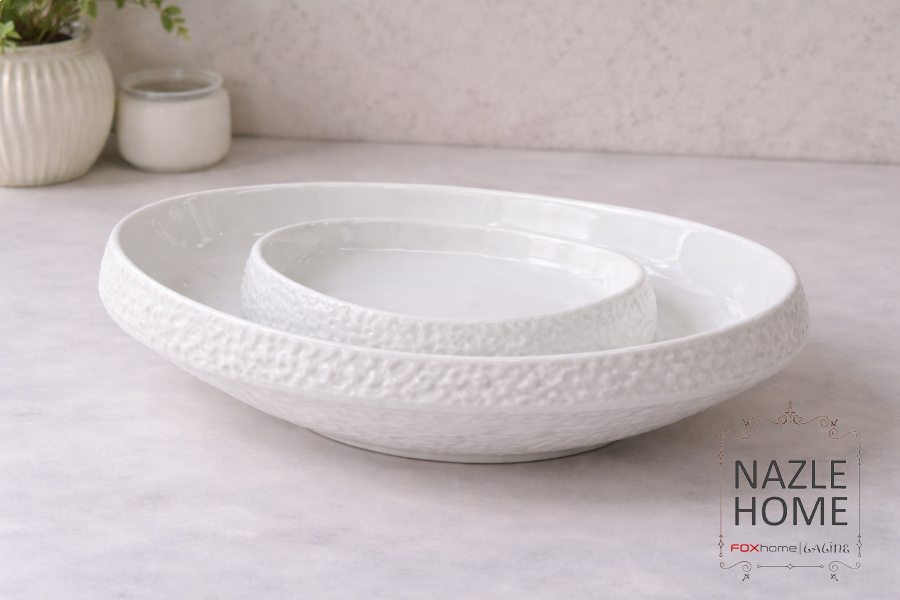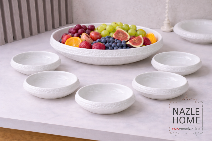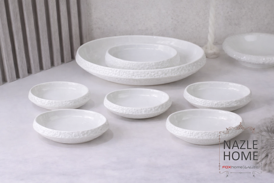طقم 7 قطع جاط مع 6 صحون للتقديم - ابيض صخرة
