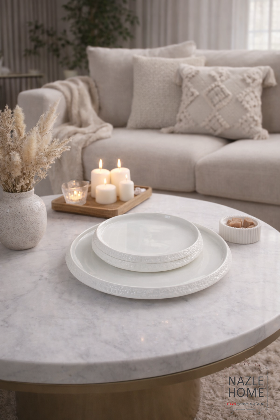 طقم 7 قطع جاط مسطح مع 6 صحون لتقديم الكيك ابيض صخرة