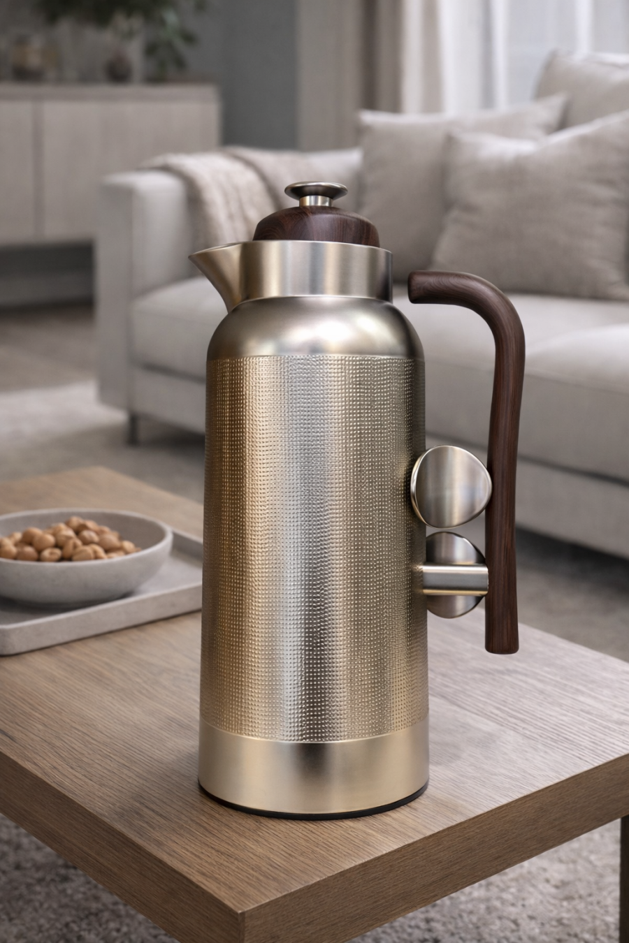 تيرموس فضي منقط مع خشب
