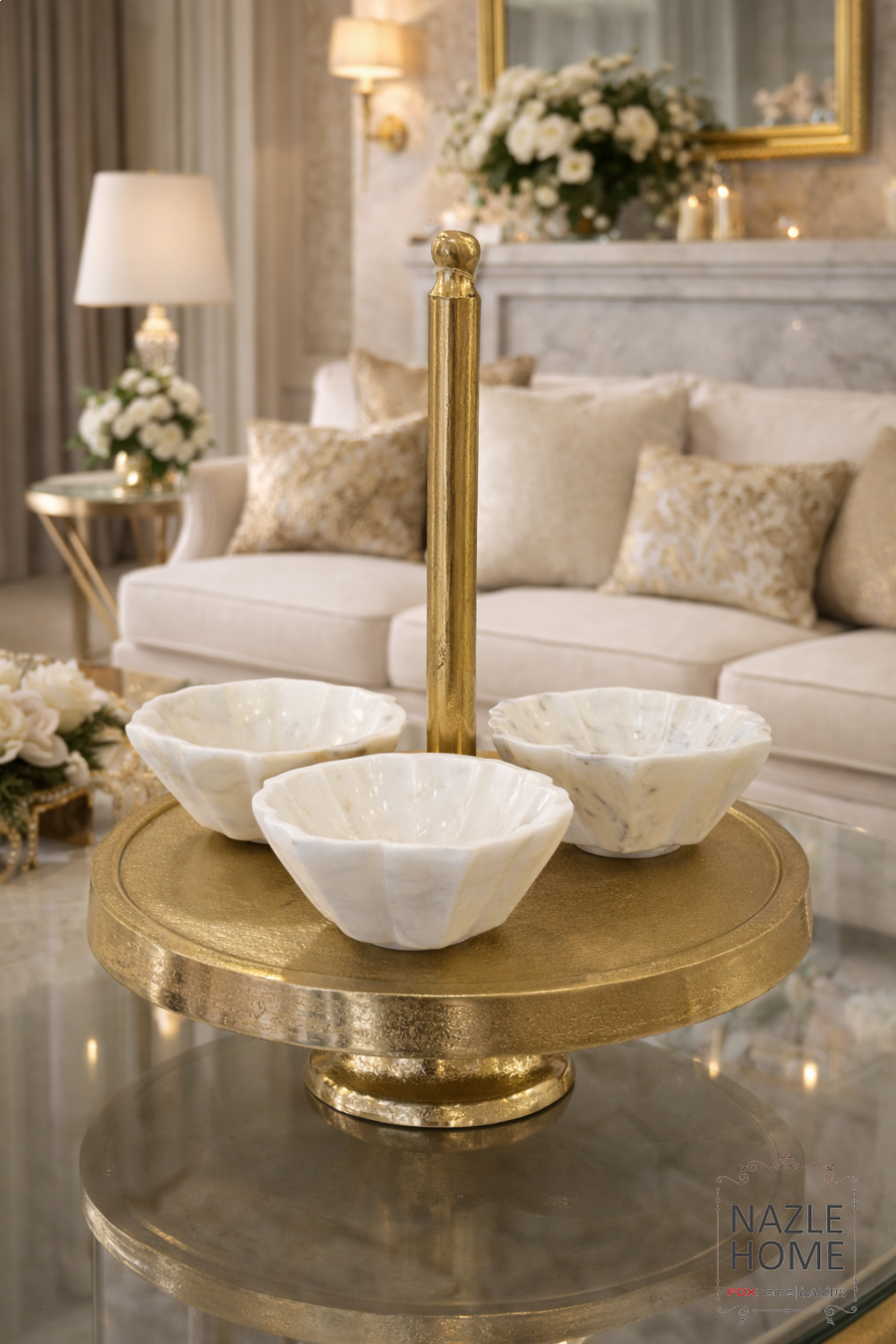 مضيفة ستاند ذهبي مع 3 صحون رخام ماربل