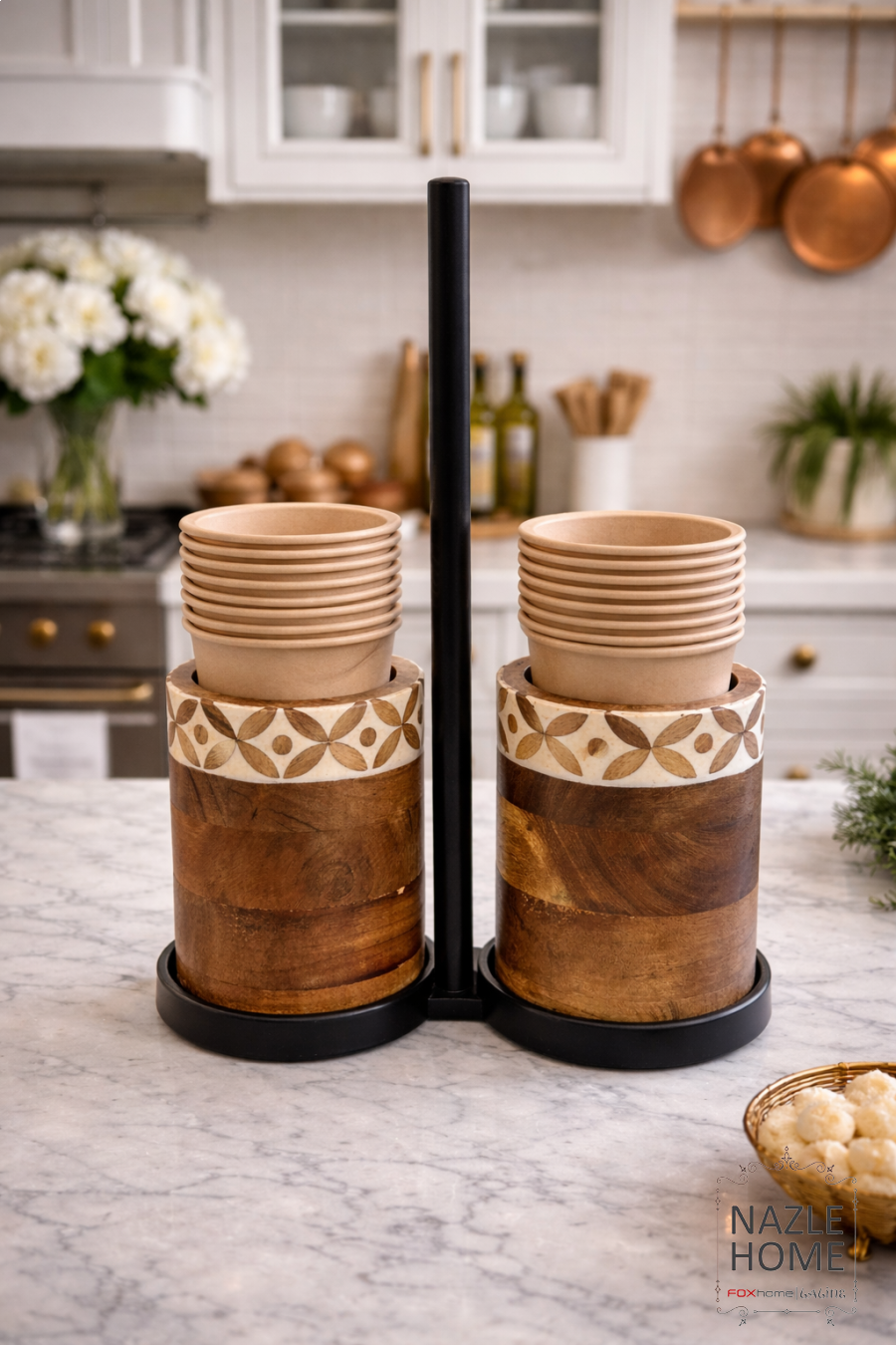 ستاند حامل للكاسات خشب مع نقشة