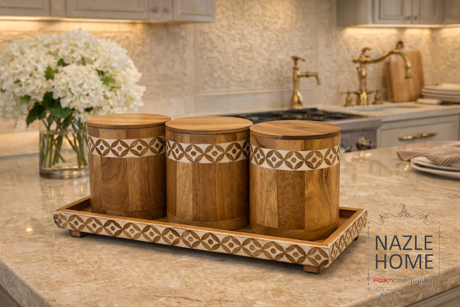 طقم صينية مع 3 علب خشب