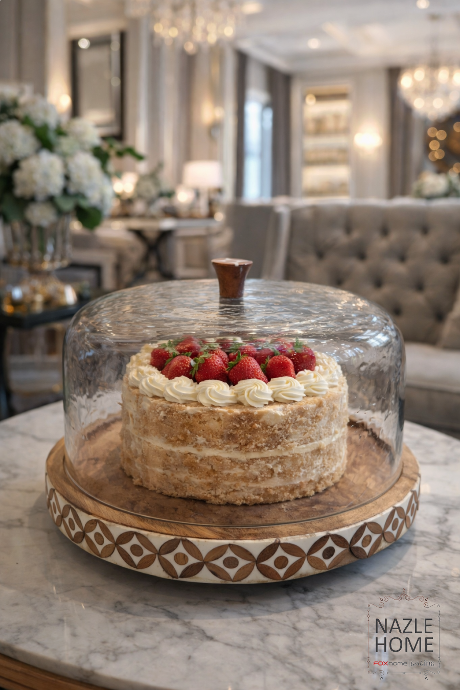 مضيفة لتقديم الكيك خشب غطا زجاج
