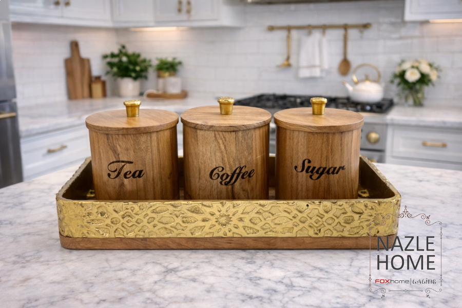 طقم سكريات صينية مع 3 علب خشب هندي