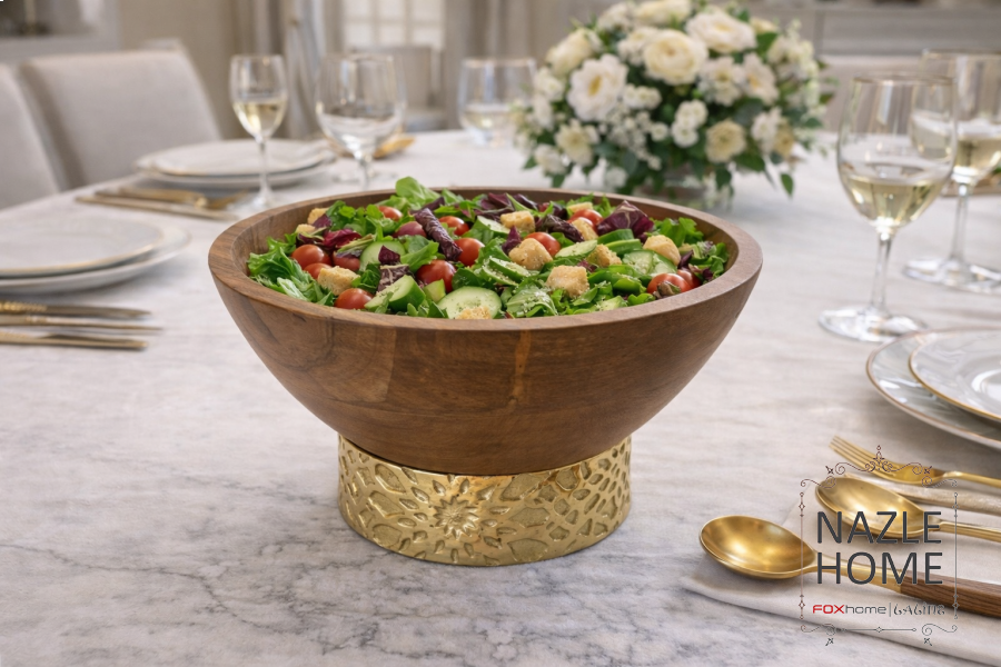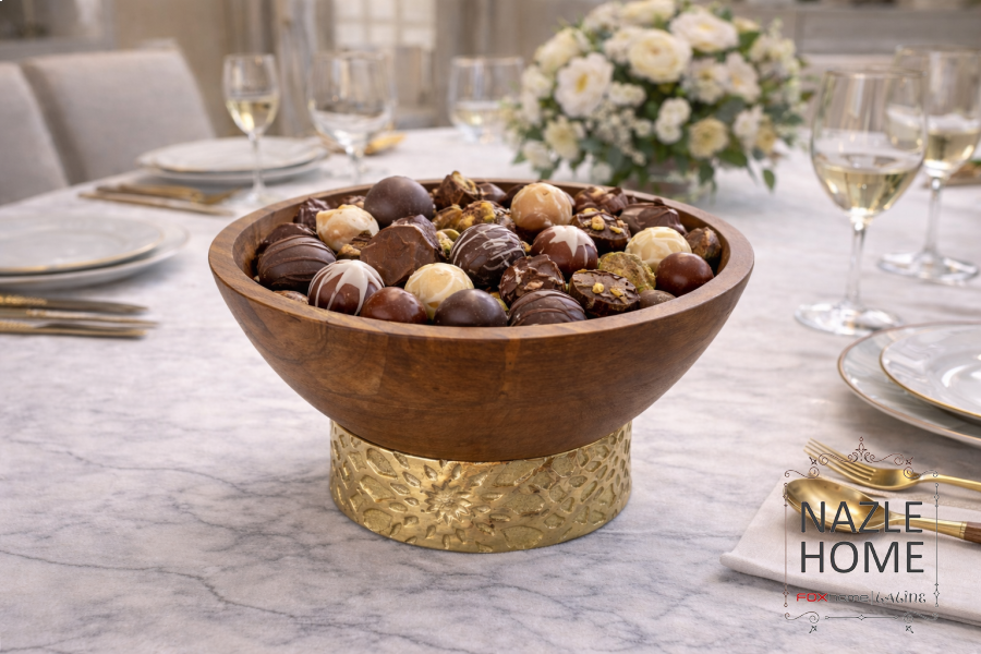 جاط تقديم خشب مع قاعدة نحاس ٣ احجام