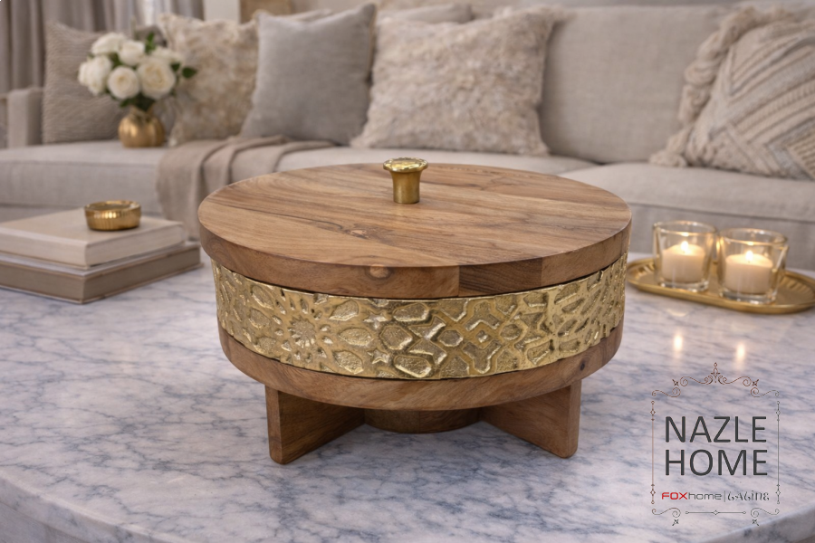 مضيفة تقديم مع قاعدة خشب هندي