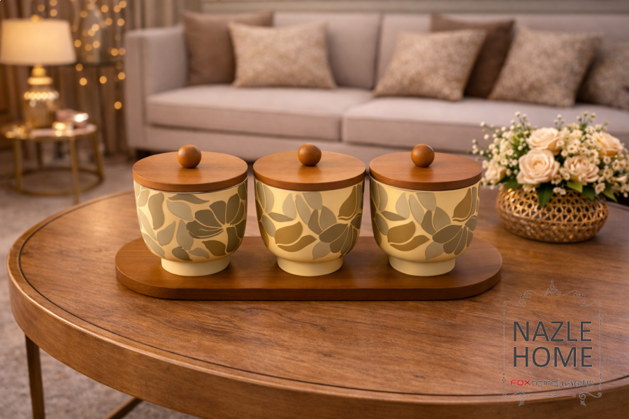 صينية مع 3 علب للتقديم مورد