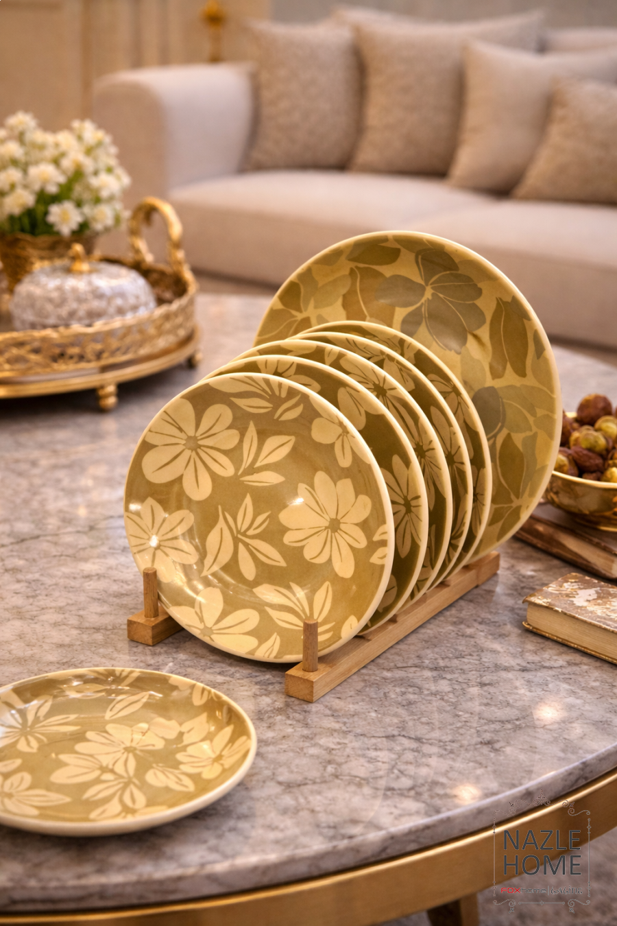 طقم 7 قطع جاط مع 6 صحون مورد
