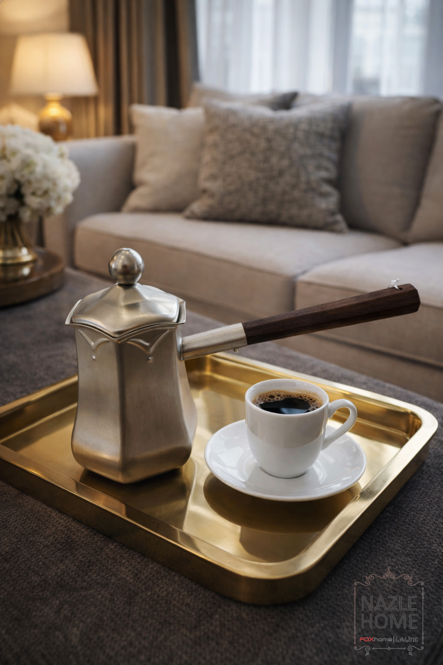 طقم غلايات قهوة فضي يد خشب 350/540/720 مل