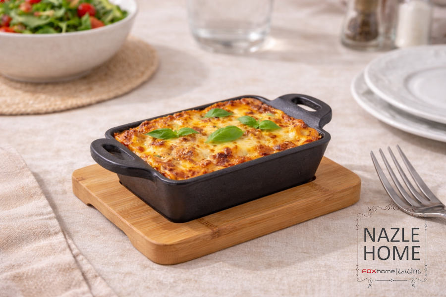 طقم قاعدة خشب مع بايركس اسود حراري حجم 15*11*3 cm