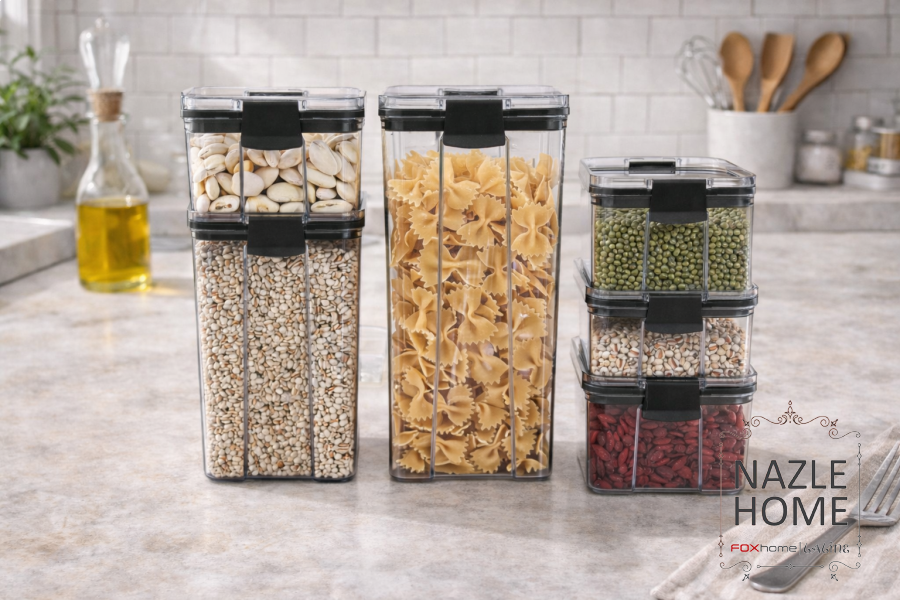 طقم علب لحفط البقوليات 6 قطع ضغط محكم