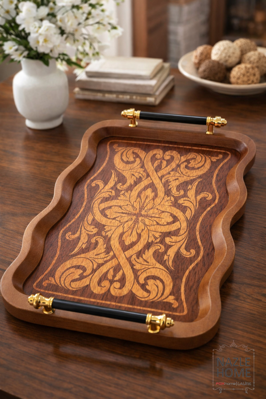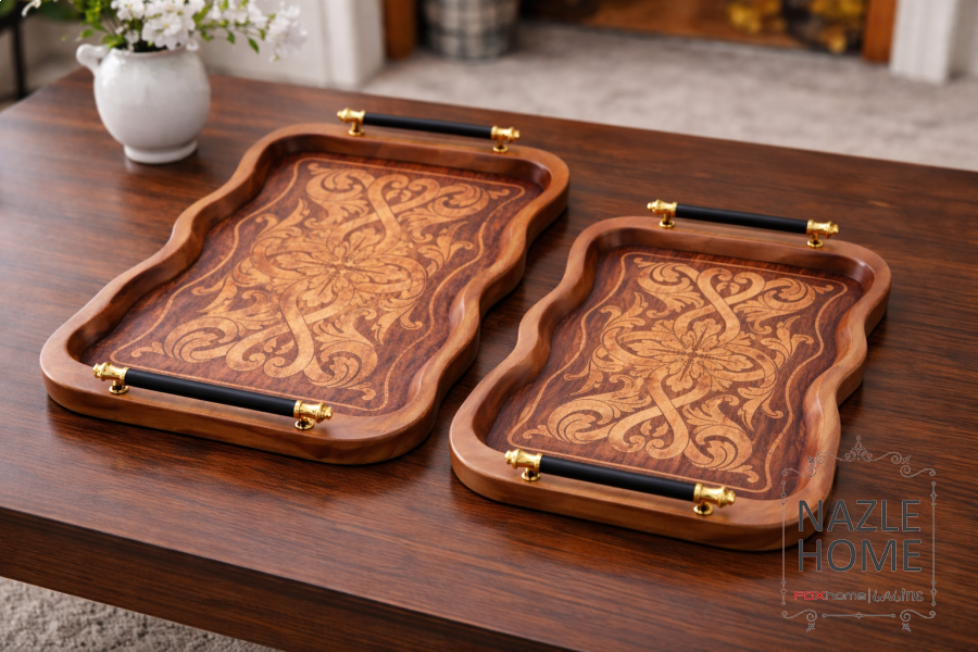 طقم صواني خشب قطعتين مموج زخرفة