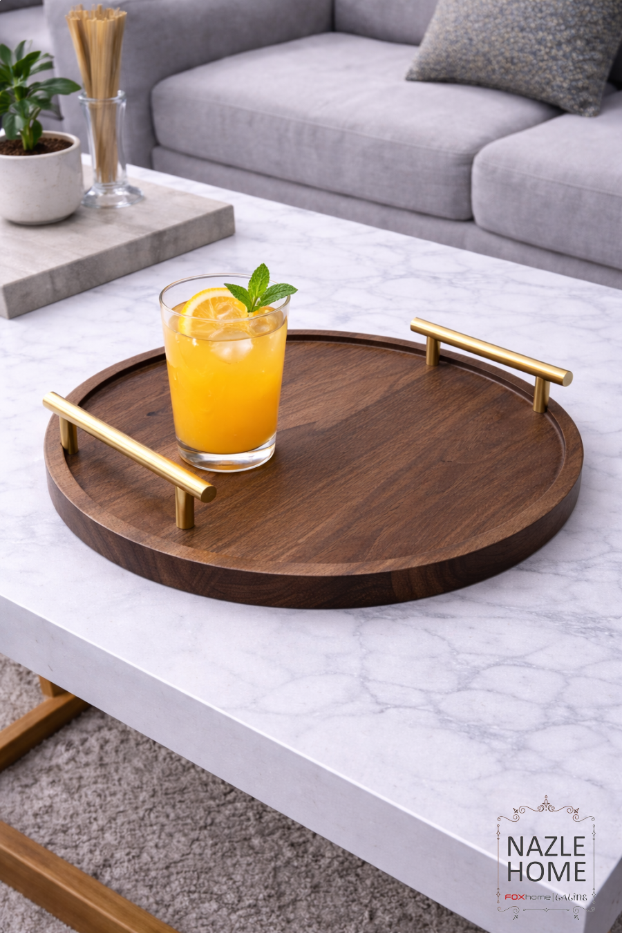 طقم صواني مدور قطعتين يد ذهبي
