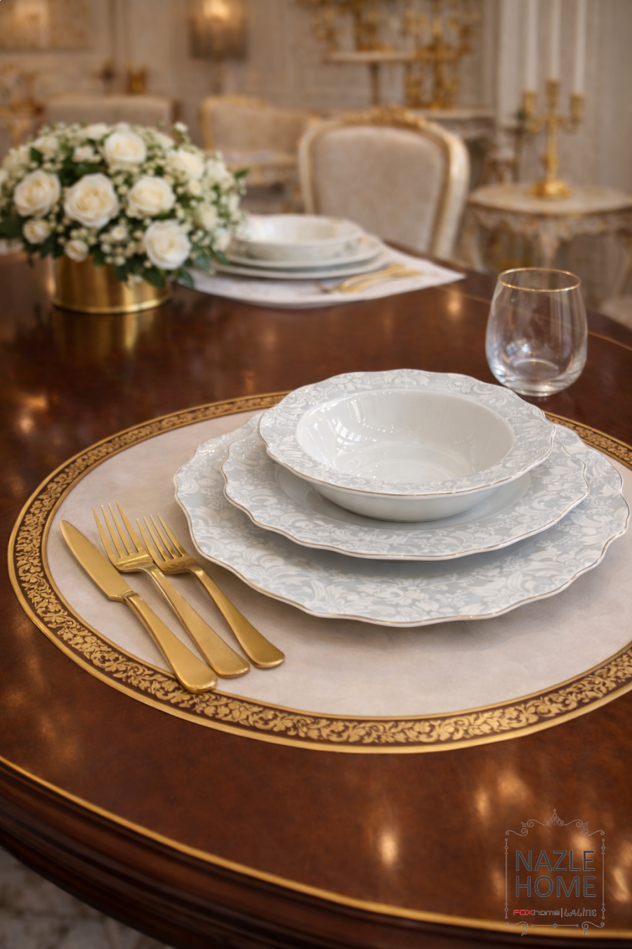 طقم سفرة 24 قطعة مورد - ازرق فاتح مايل للرمادي