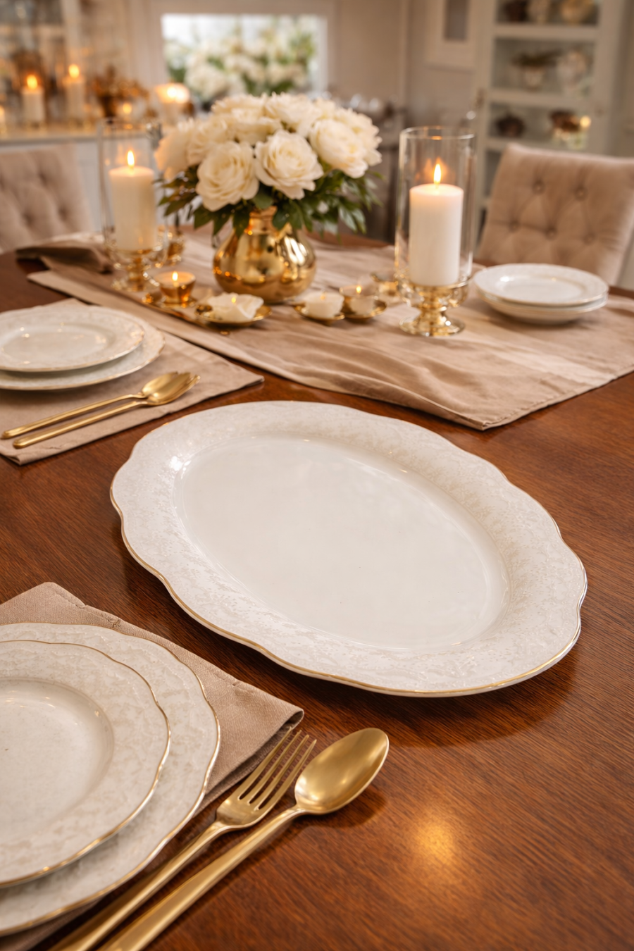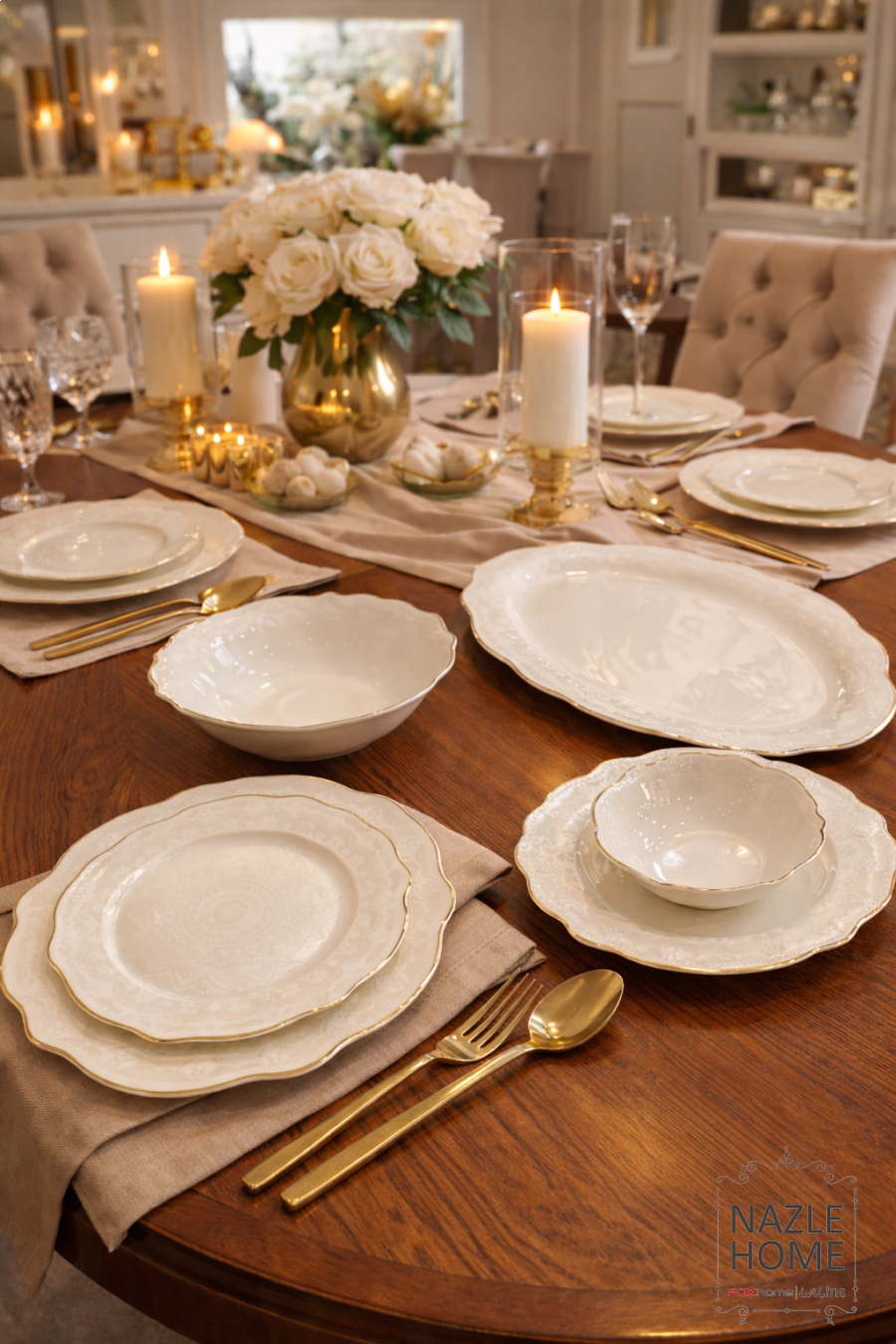 طقم سفرة مميز 26 قطعة ابيض منقش