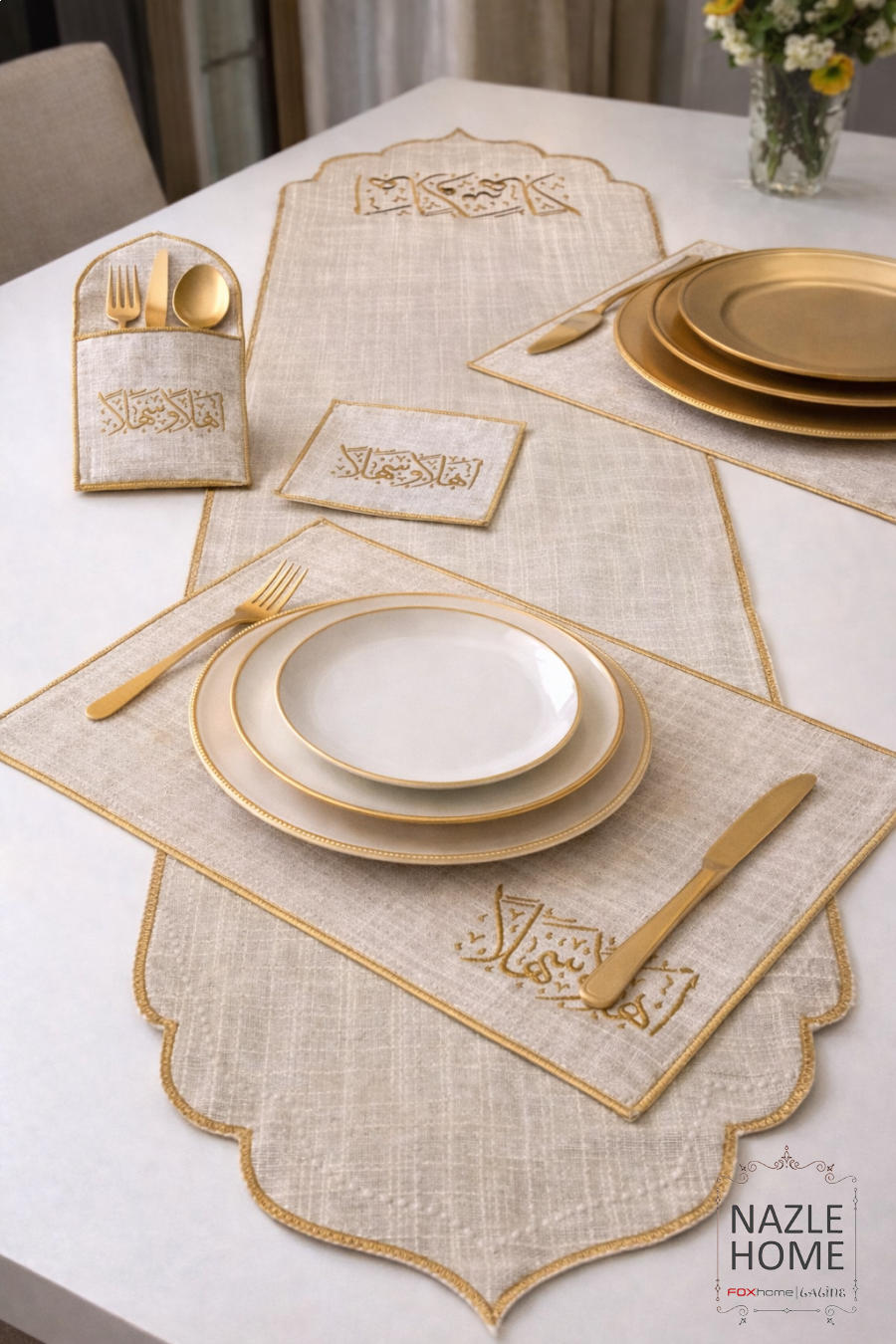 6 كوسترات /6 محارم /6 حمالة شوك ومعالق / رنر