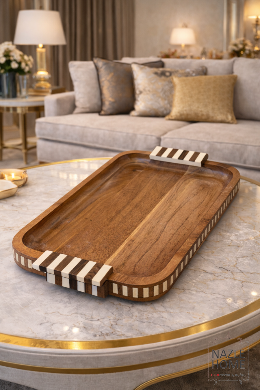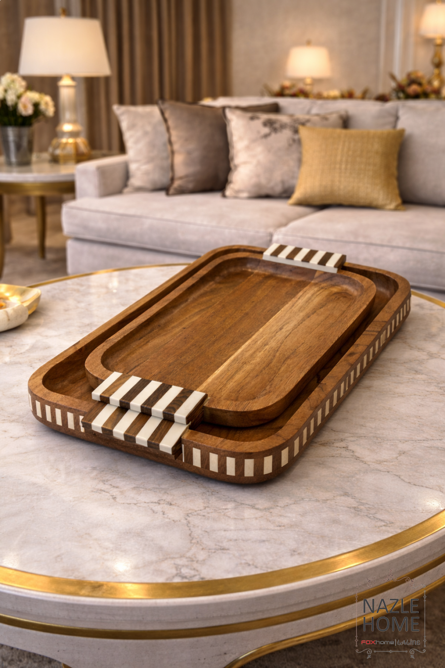 طقم صواني خشب قطعتين