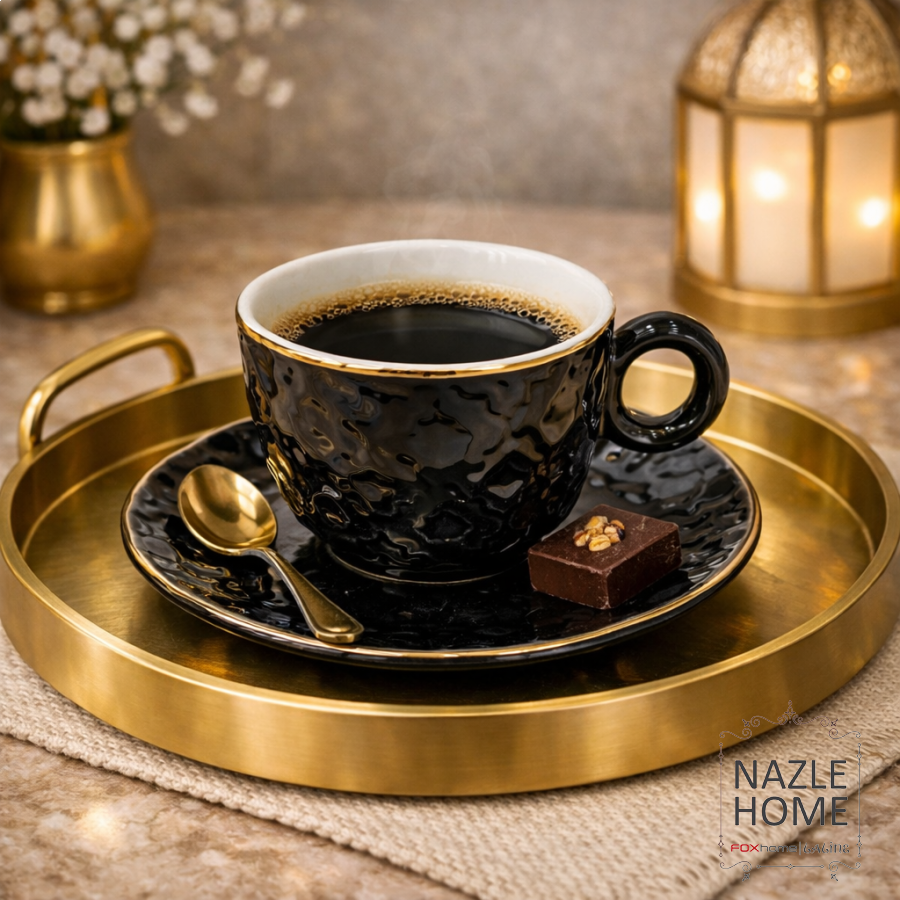 طقم 6 فناجين قهوة مع صحون - اسود