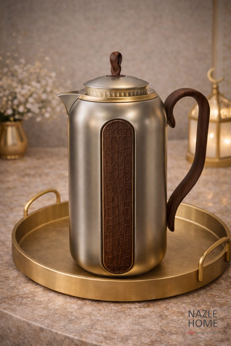 تيرموس ستانلس فضي مع خشب