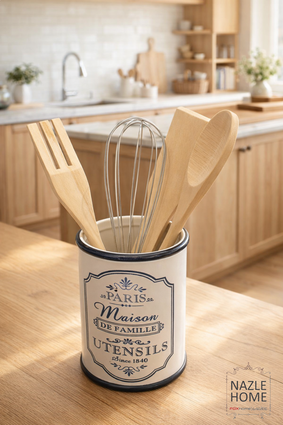 علبة زجاج مع مغارف خشب