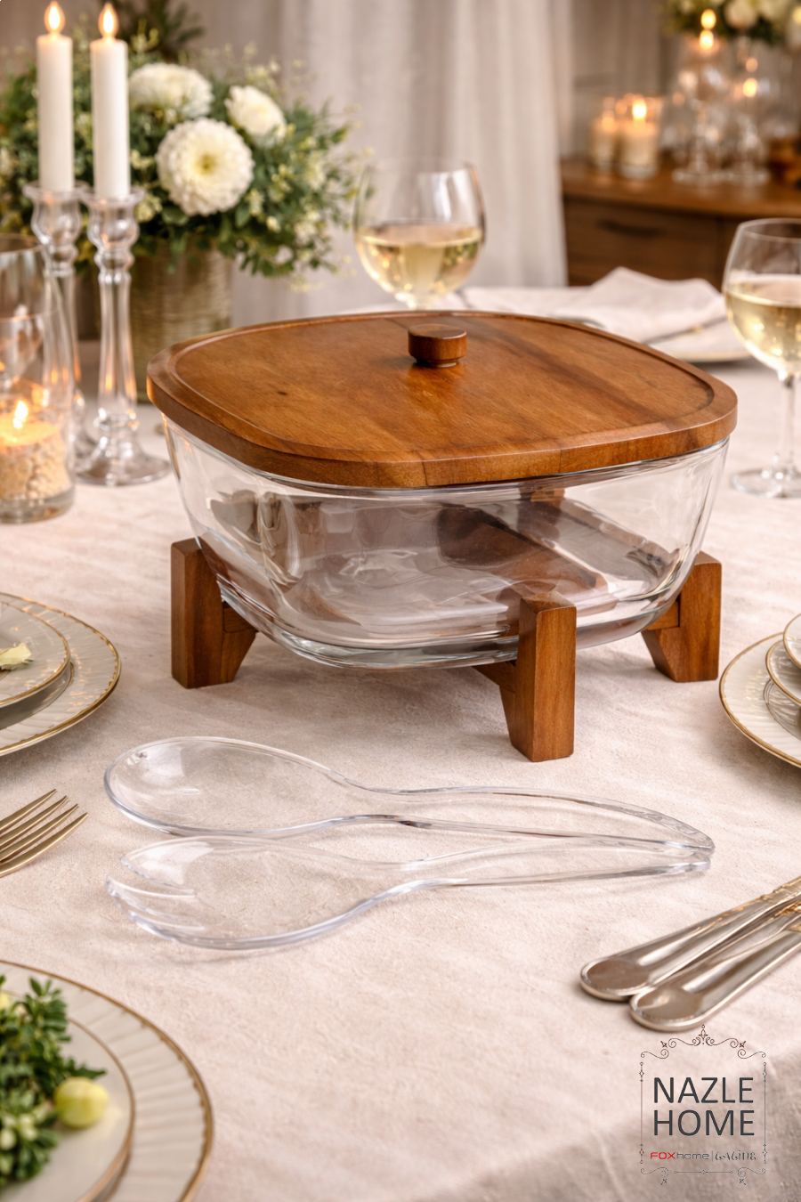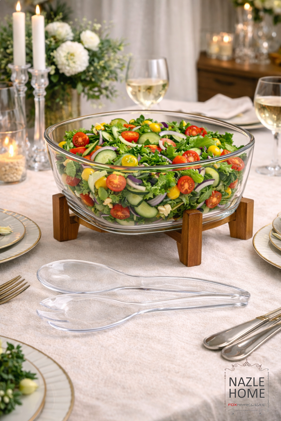 جاط سلطة تقديم مع قاعدة خشب ومغارف