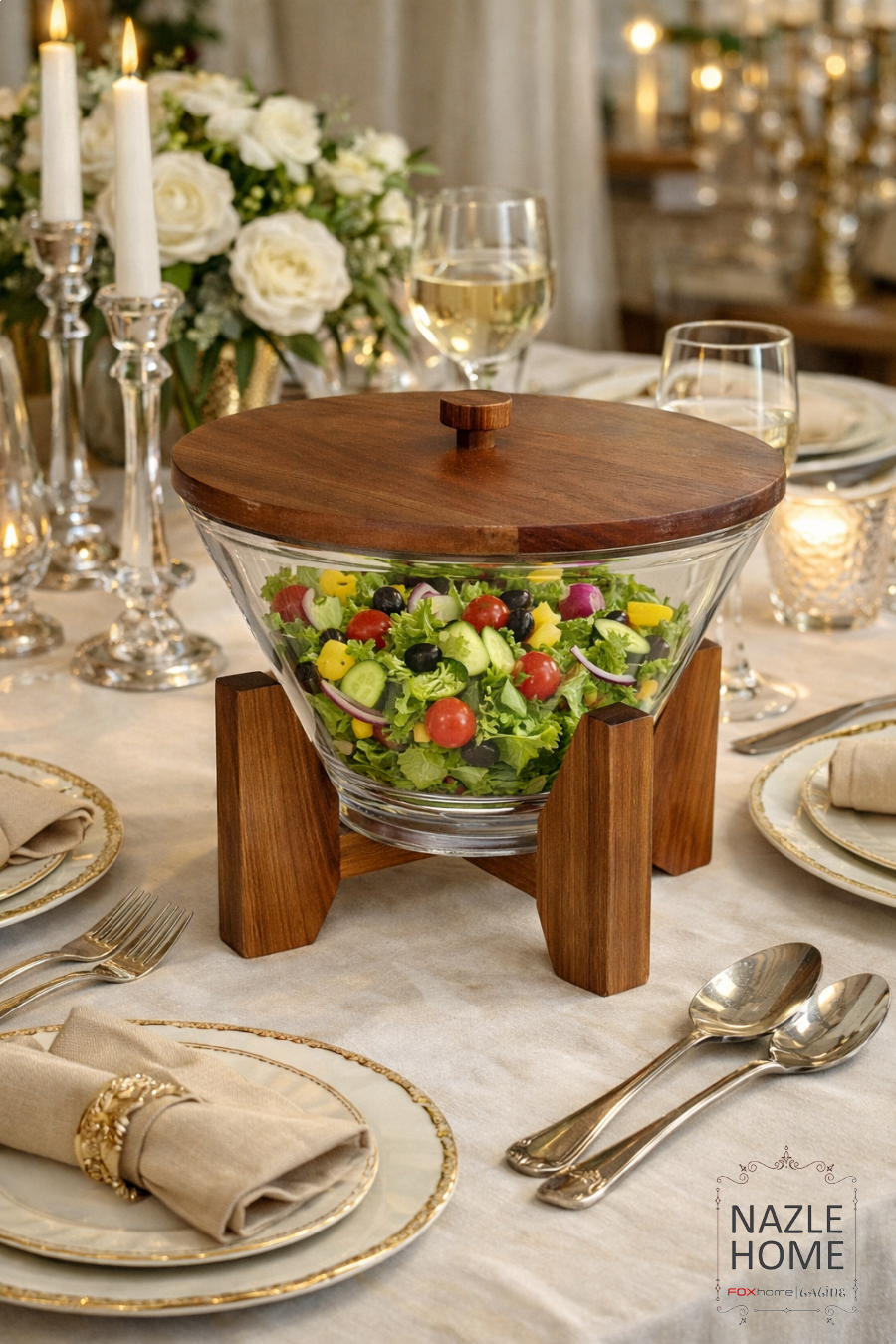 جاط سلطة مع قاعده خشب ومغارف اكريلك
