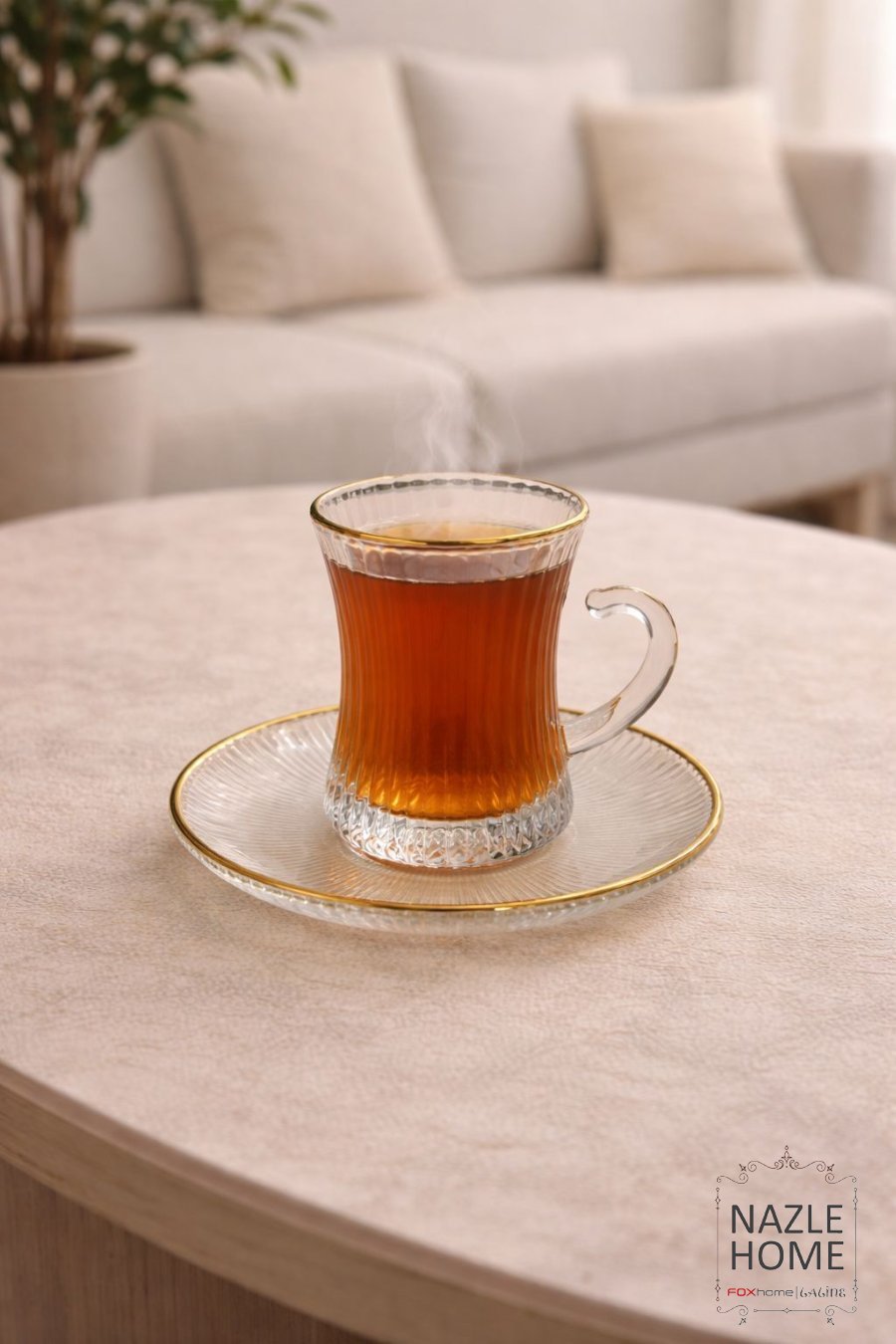 طقم 6 كاسات شاي محزز مع صحون