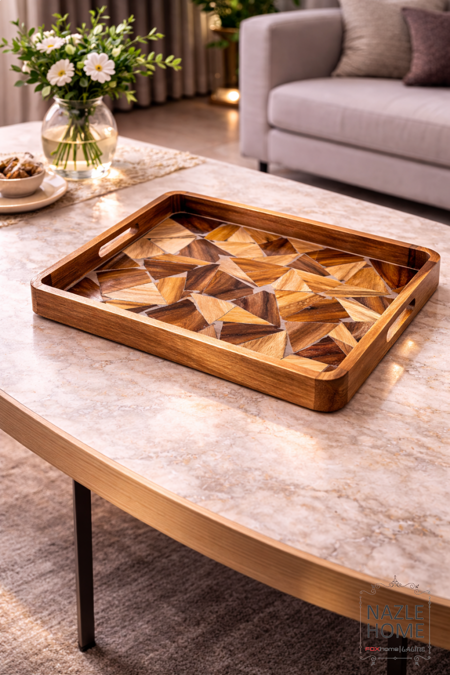 صينية حجم كبير خشب مع ريزن
