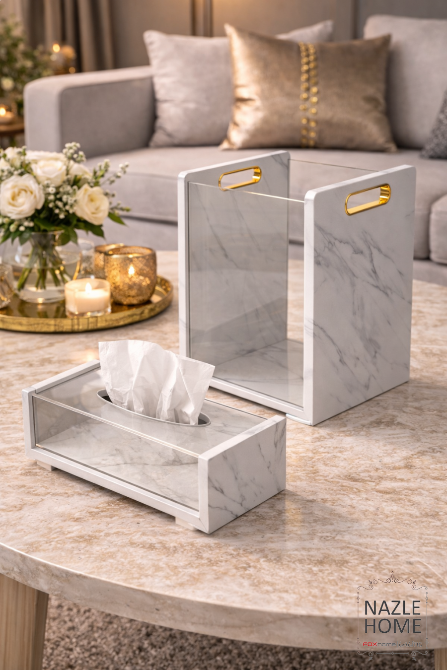 طقم سلة مع بكيت محارم ماربل