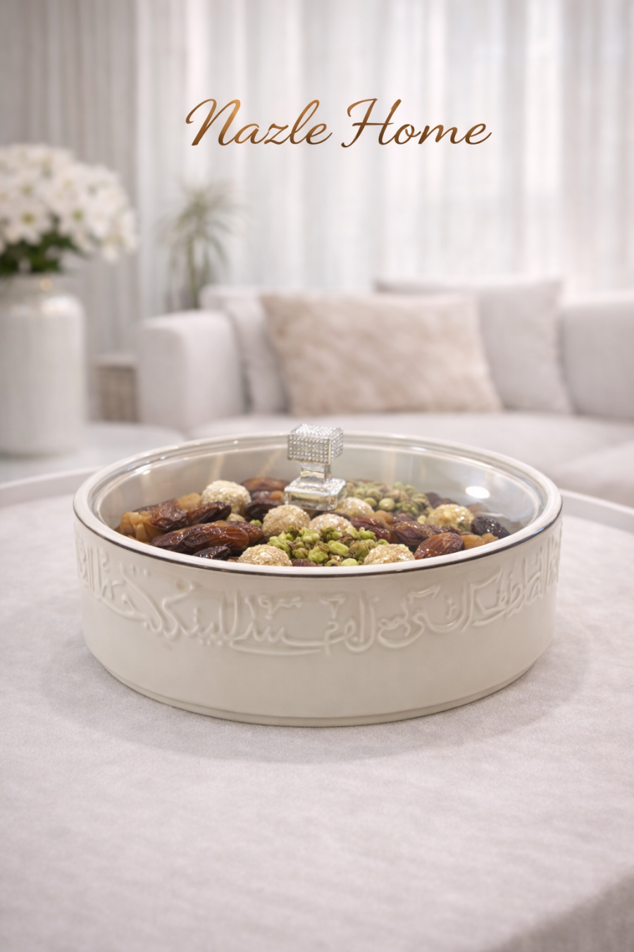 مضيفة تقديم دائري حجم وسط بيج فاتح