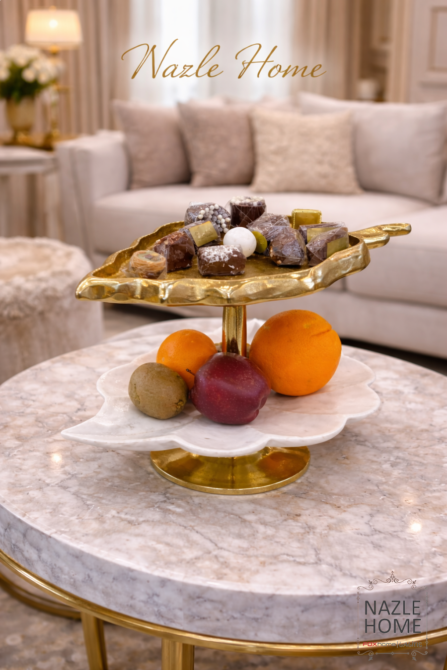 مضيفة تقديم طبقتين ورقة رخام ونحاس