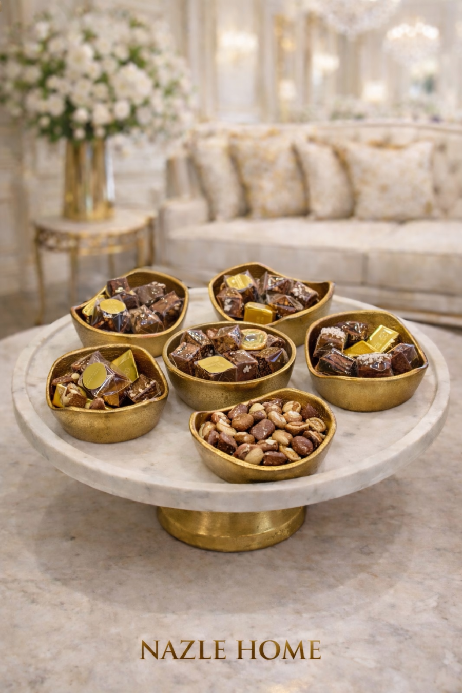 مضيفة تقديم رخام مع 6 صحون نحاس