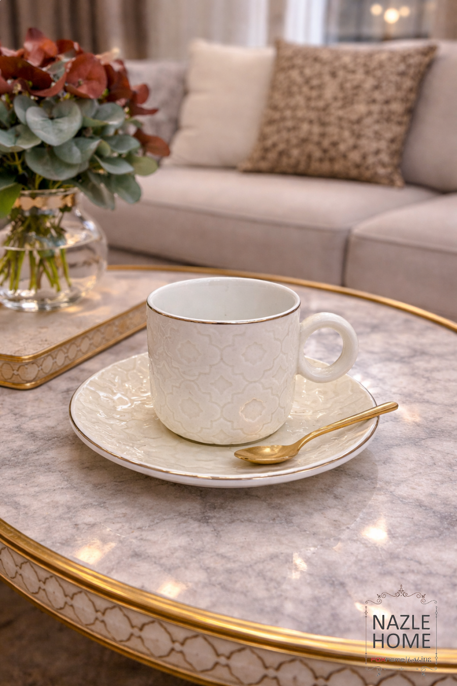 طقم 6 فناجين قهوة مع صحون افوايت