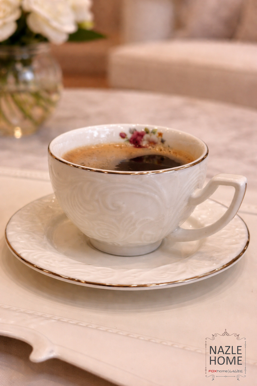 طقم 12+12 فناجين قهوة ابيض مزخرف