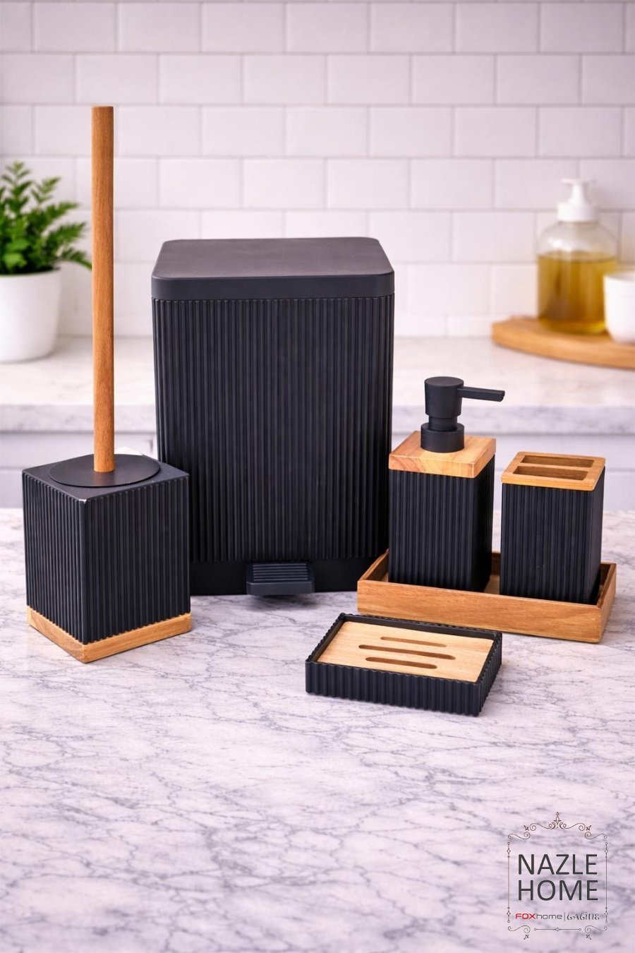 طقم حمام 6 قطع اسود وخشبnew collection