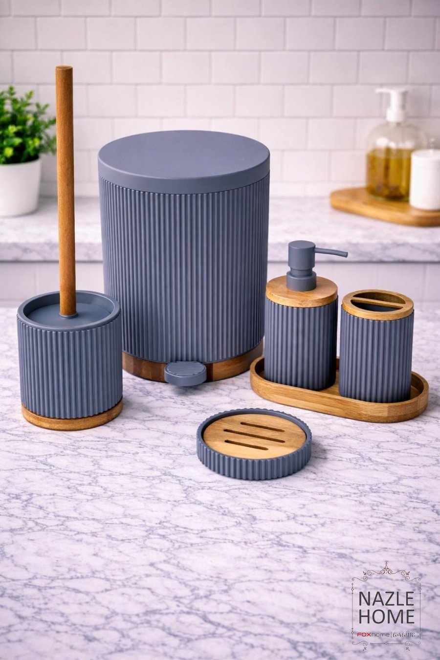 طقم حمام 6 قطع رمادي وخشبnew collection