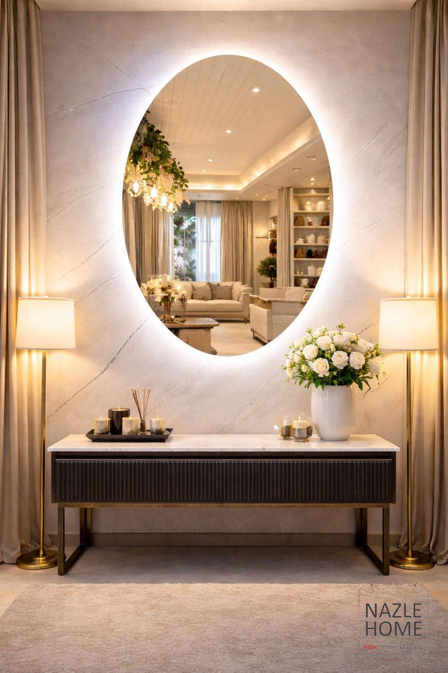 مرآة بيضاوي اضاءة usb -57قياس 50*75