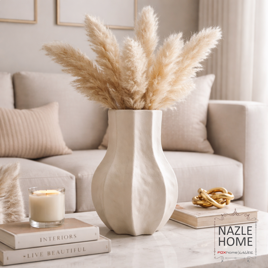 فازة سيراميك ابيض مخطط - كبير