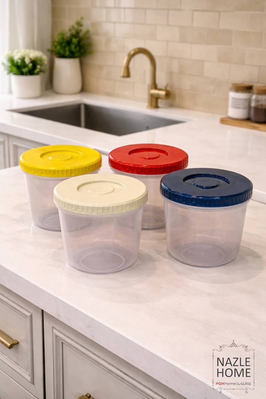 طقم علب ٤ قطع اكريلك غطا ملون - 950 مل