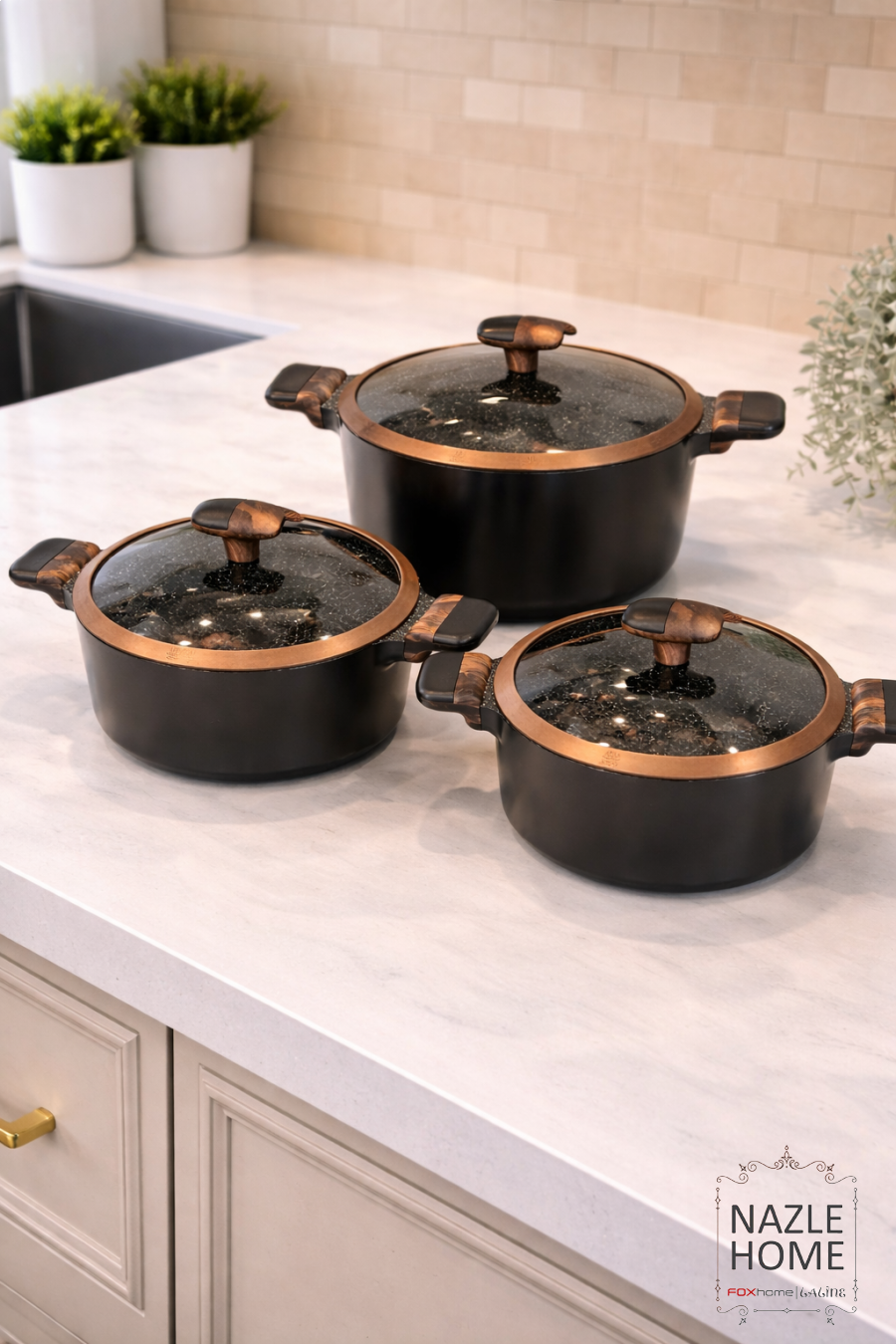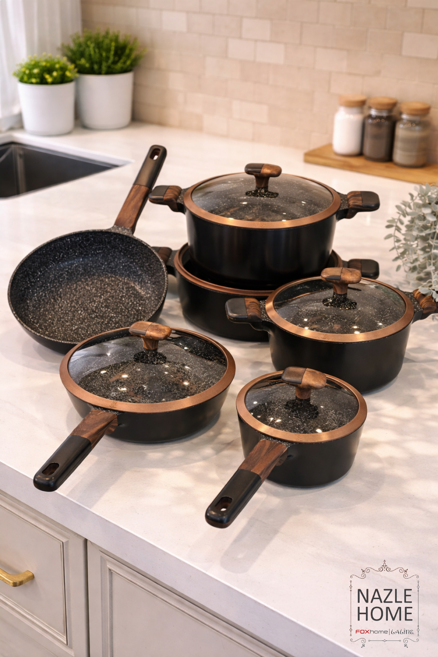 طقم طناجر 11 قطعة اسود جرانيت