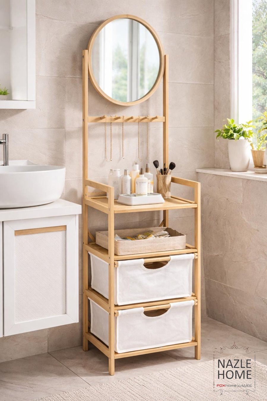 ستاند تنظيم رفوف مع سلال قماش + مرآة بامبو   153*41*33