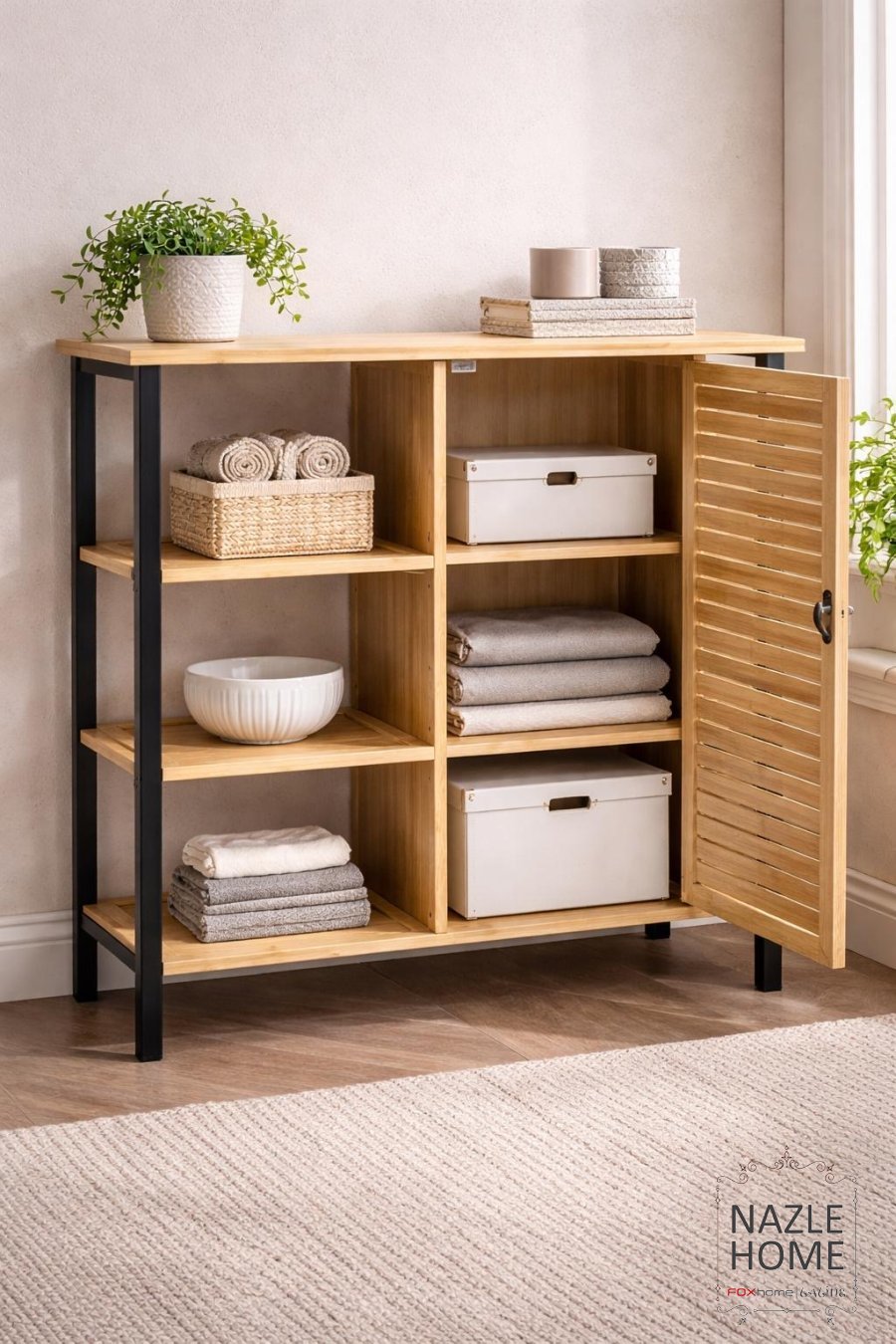 خزانة للتنظيم مع رفوف ديكور خشب واسود بامبو 70*65*28
