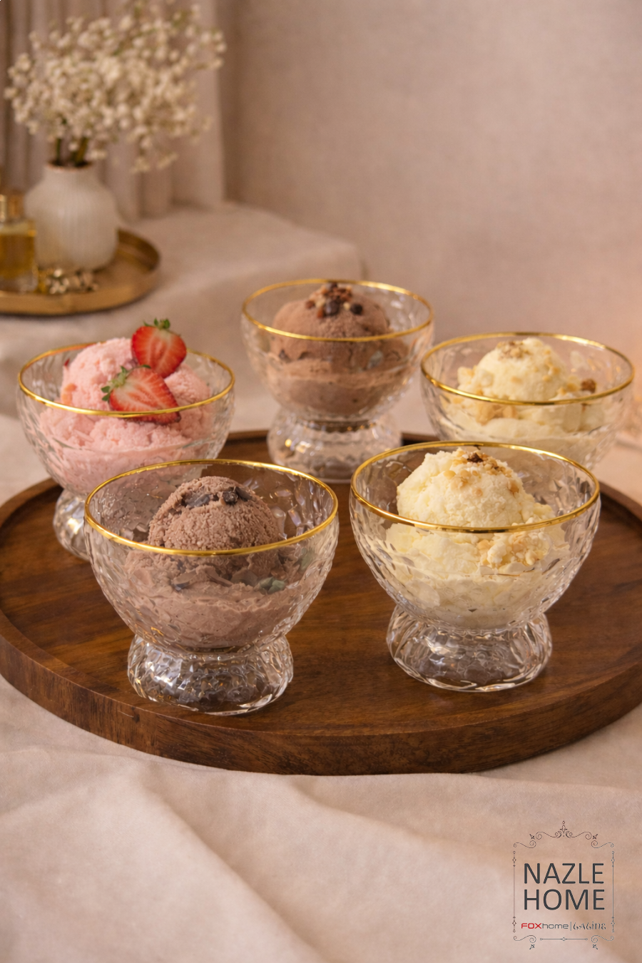 طقم 6 صحون بوظة شفاف مع حز ذهبي