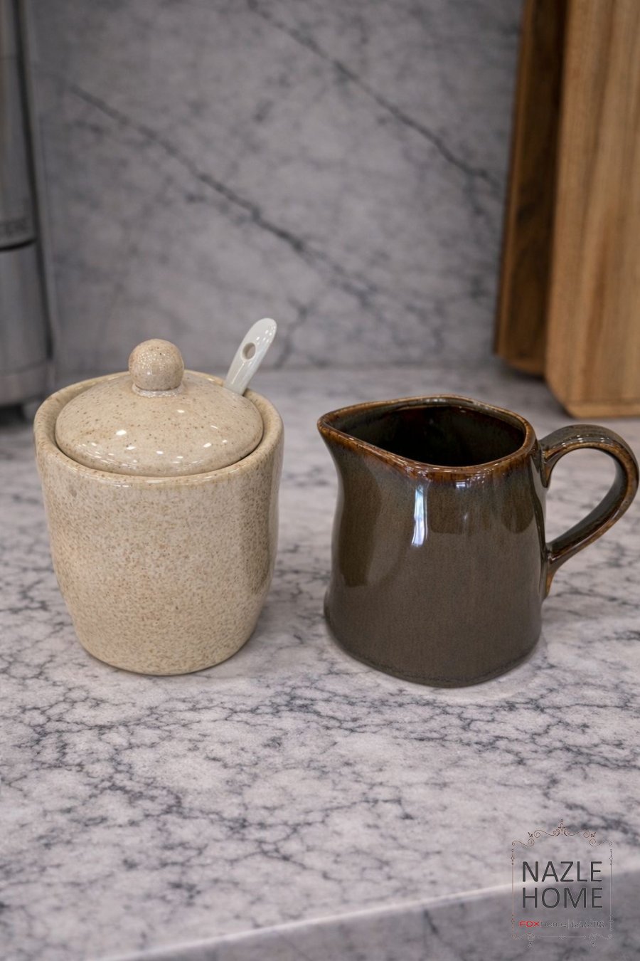 طقم قطعتين زجاج سكرية + علبة للقطر