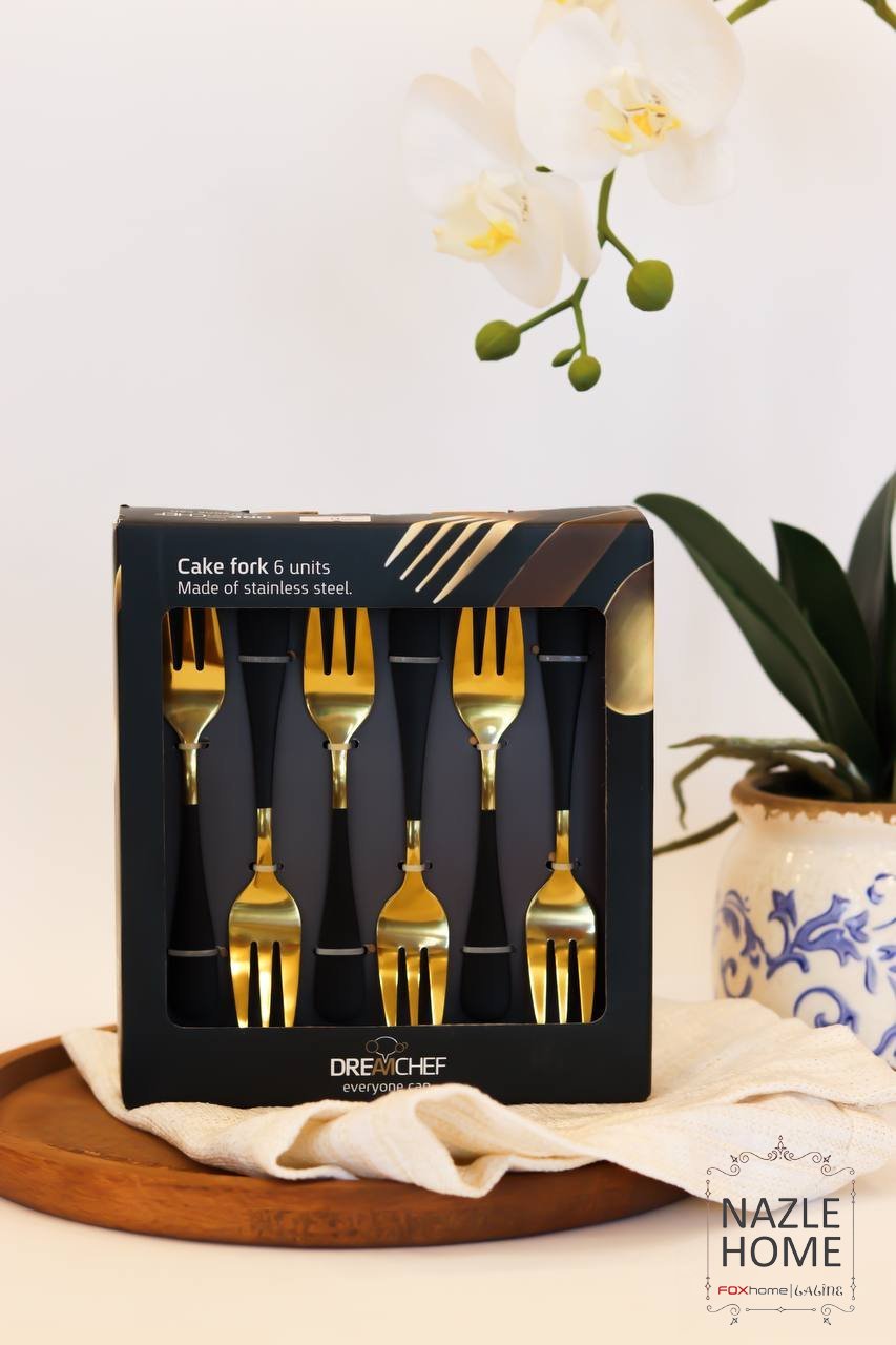 طقم شوك- اسود وذهبي - 6 قطع صغير